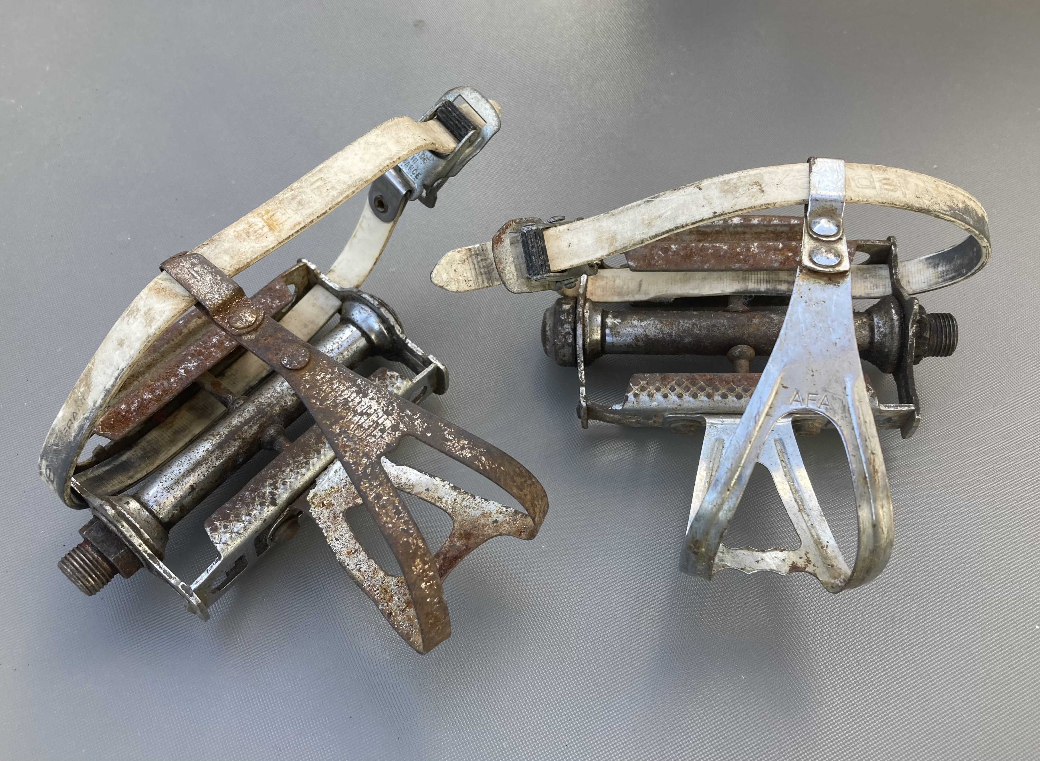 Französische Lyotard(?)-Pedale, M14 x 1,25, mit reichlich Patina.
