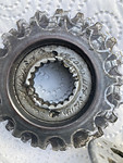 Atom-Schraubkranz 14-21, französisches Gewinde M35x1, die Aufnahme für den Abzieher hat jemand verhunzt. Der Atom-Abzieher passt aber noch.